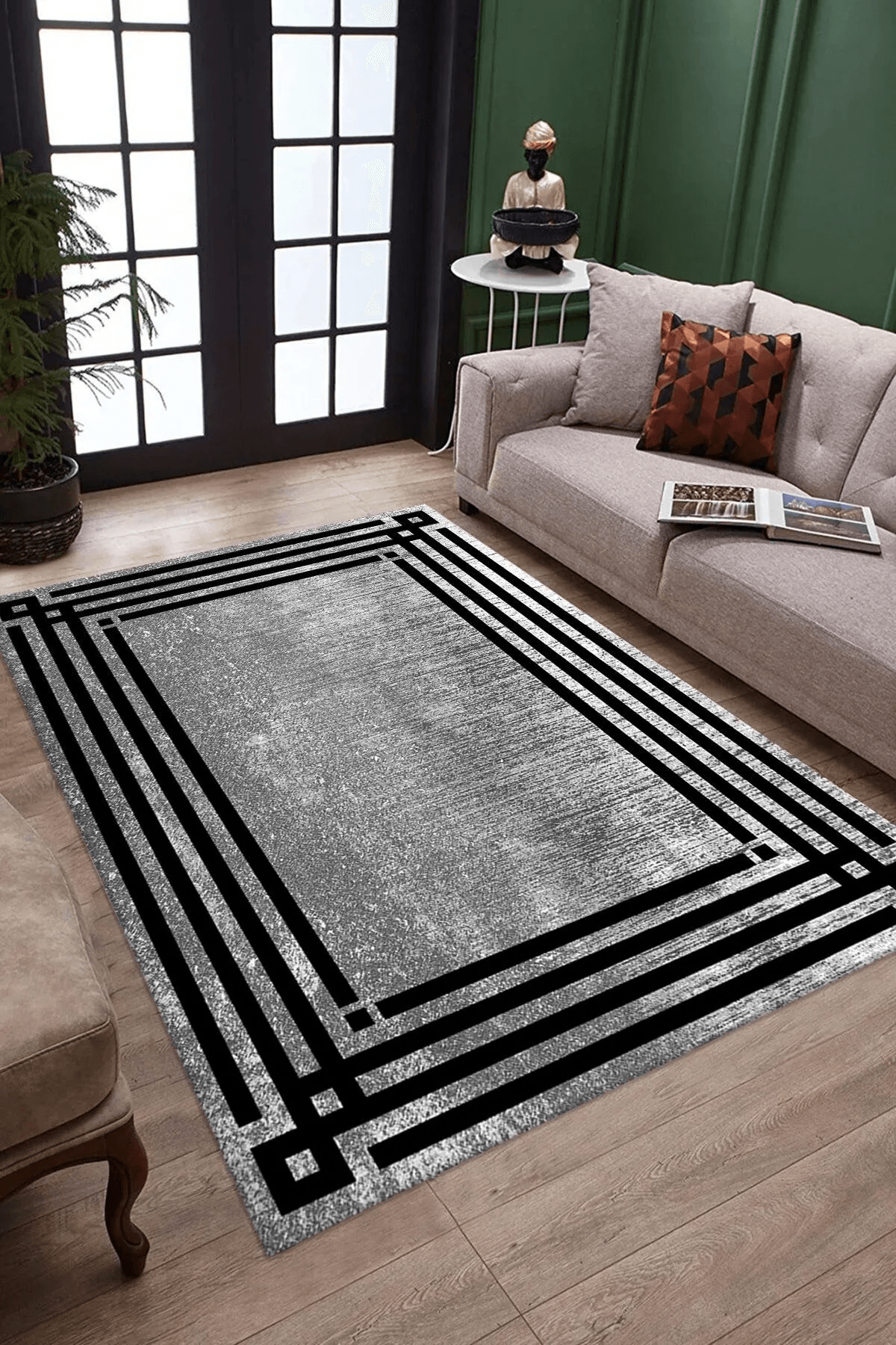 3 CM Süngerli Ortopedik Seccade - Siyah Minimal Kadife Kaymaz Tabanlı - Carpetella