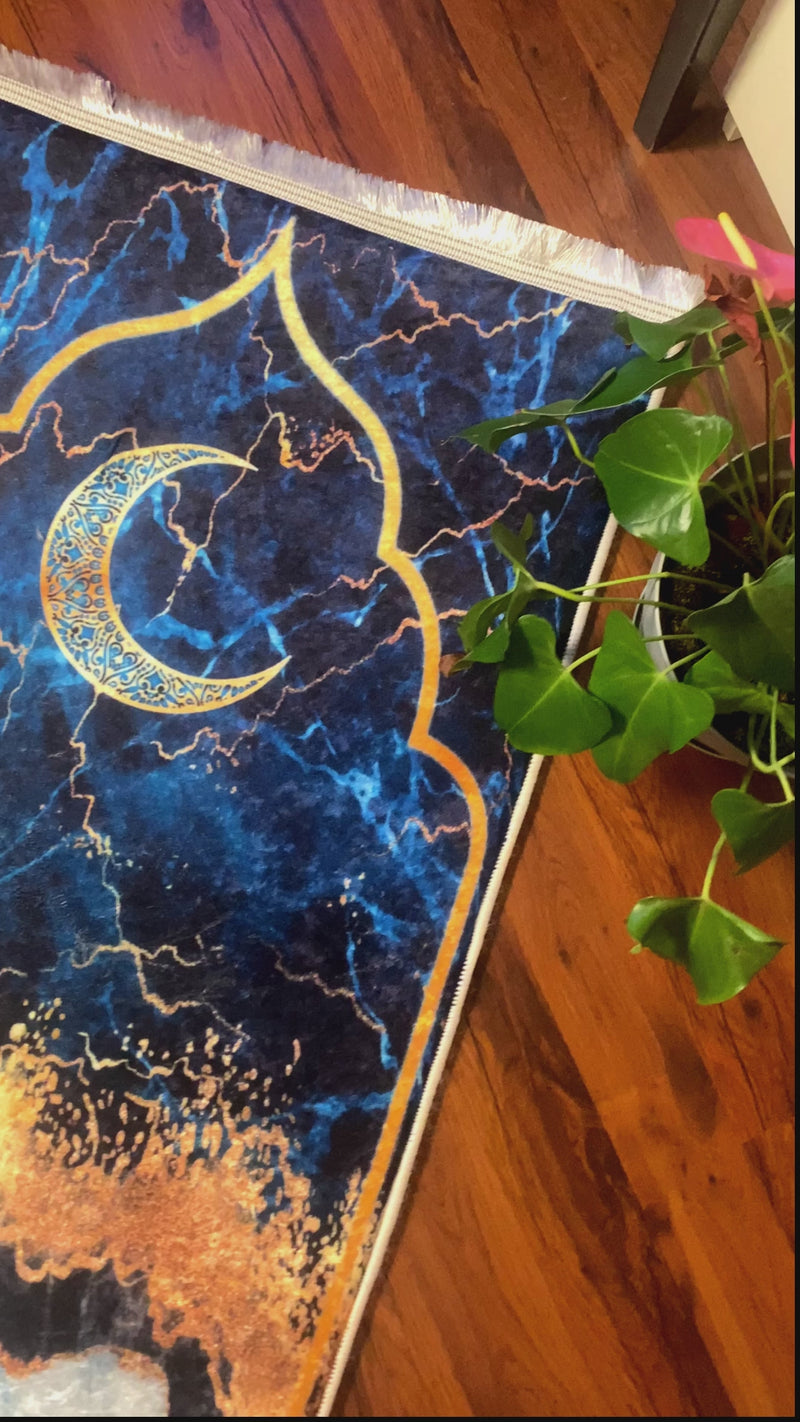 Lacivert Gold Kadife Ortopedik Seccade - İsme Özel 3 CM Süngerli
