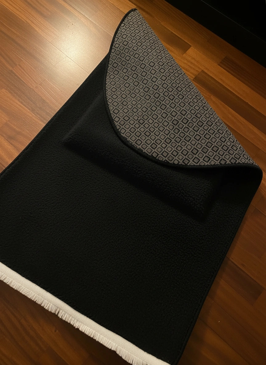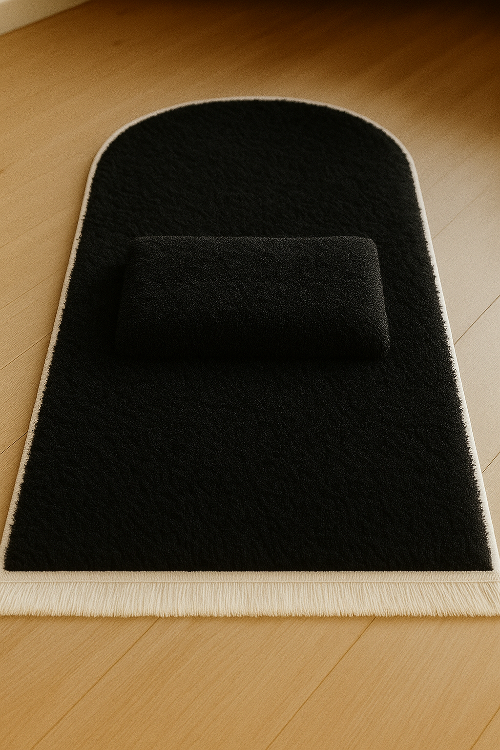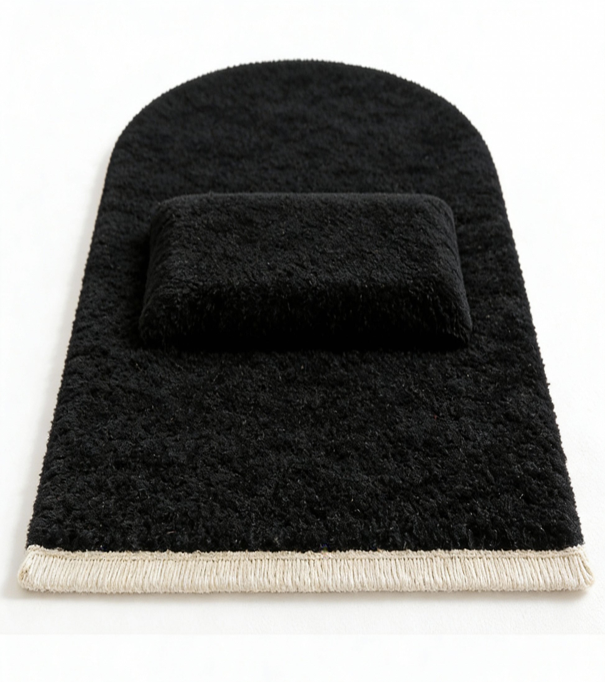 7 CM Ortopedik Ortası Süngerli Diz Ağrıtmaz Siyah Peluş Seccade Namazlık