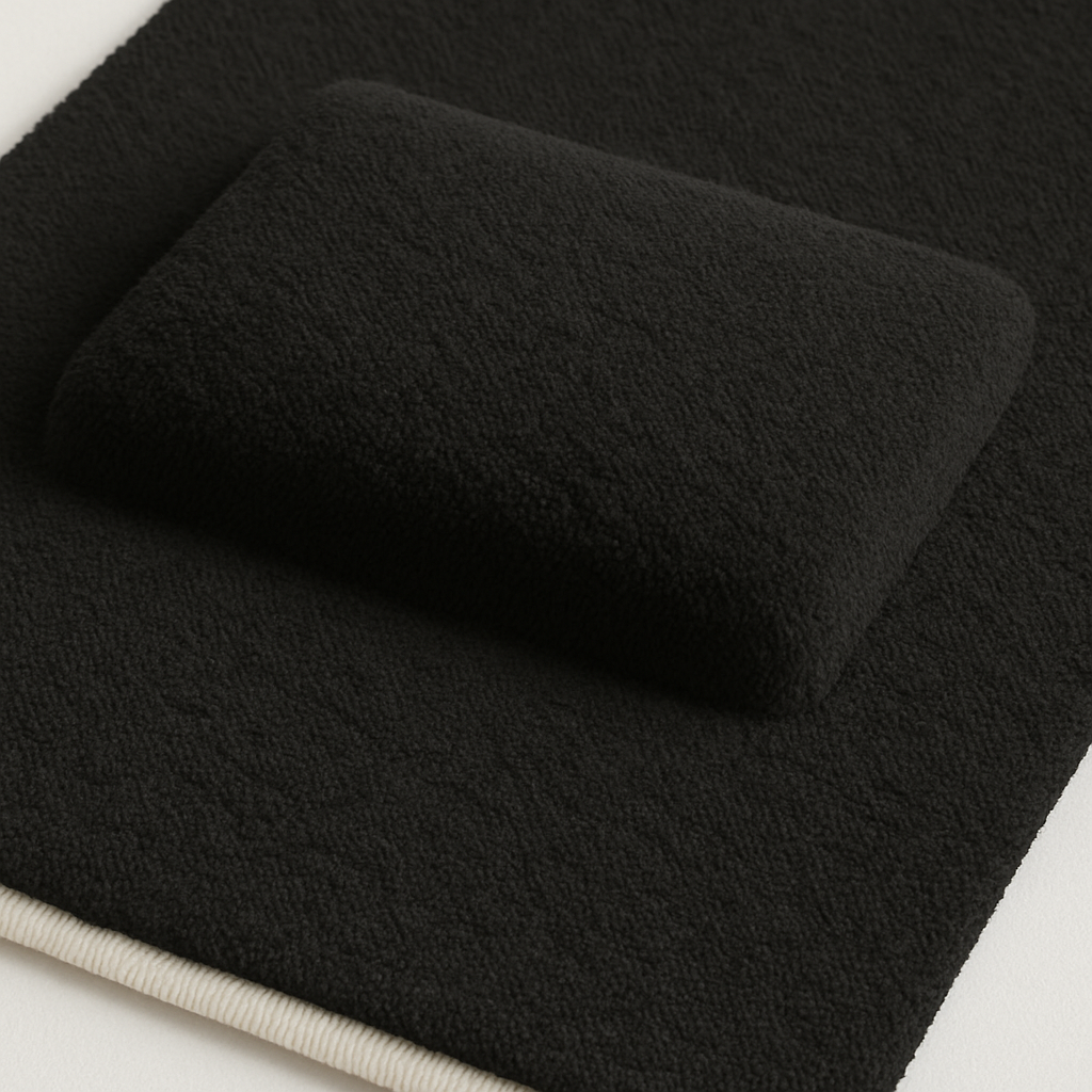 Üst yüzeyinde kullanılan yumuşak ve tüylü peluş/welsoft dokusu konfor hissini artırırken, kaymaz alt tabanı zemine sıkıca tutunarak güvenli kullanım sağlar.